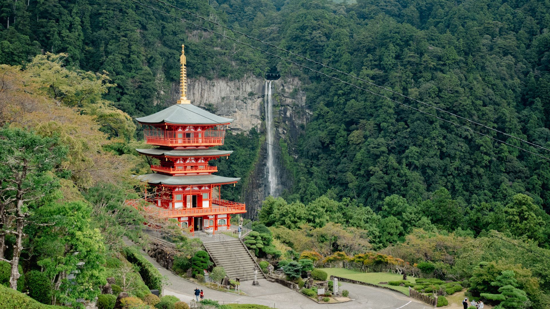At the end of the journey stands Nachi Waterfall, Japan’s most famous and tallest waterfall, which stands at 436 feet (133 meters). Set beside the bright vermilion three-storied pagoda of Seigantoji Temple, it creates one of Japan’s most striking and photographed spiritual landscapes. Visitors can stop at the observation deck to sip the pure waterfall water, said to bring longevity and good fortune while taking in the sound of the falls echoing through the forest.