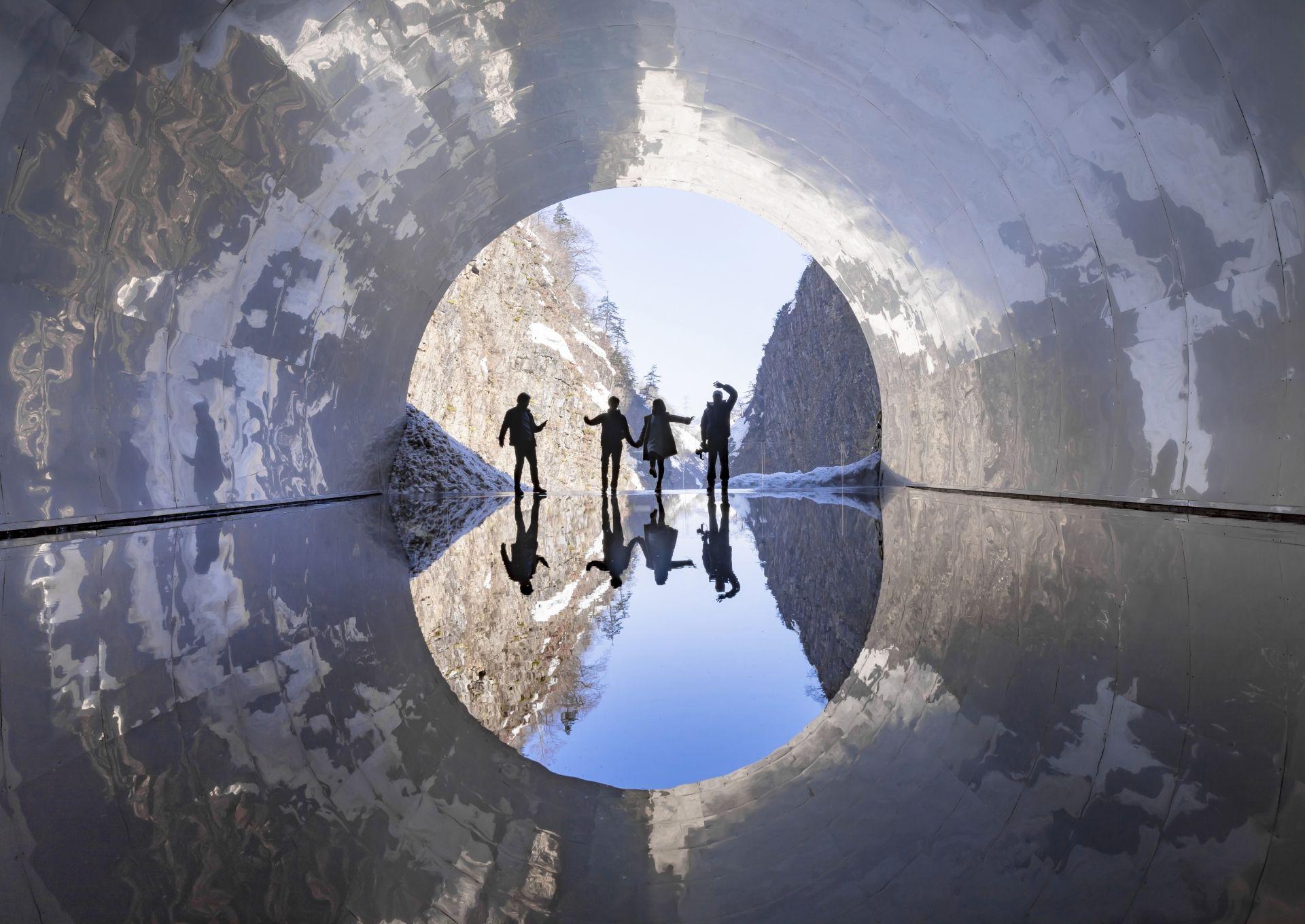 The stunning landscape could simply not be ignored, however, so in 1996, local authorities constructed a 750-meter-long tunnel to four viewing spots along the gorge. In 2018, the tunnel was renovated for the Echigo-Tsumari Art Triennale by MAD Architects, who created the "Tunnel of Light" as one of its exhibits. It features a shallow pool of spring water that creates a perfect reflection of the scenery in its still water and has become one of Hokuriku's best known natural attractions. The Tunnel of Light is only one of several artistic renovations made to the tunnel, however; several more exhibits feature art inspired by other elements of nature.